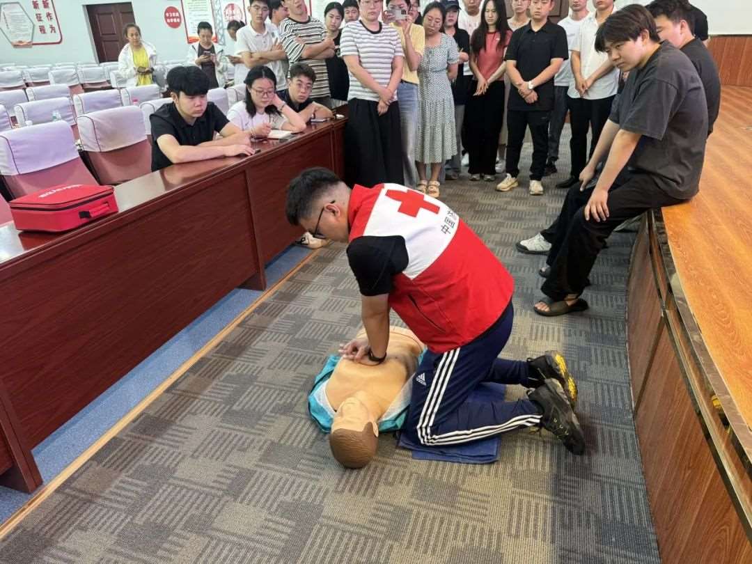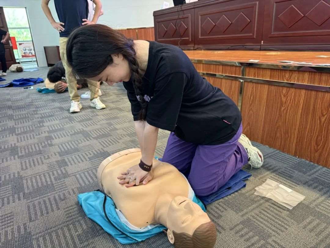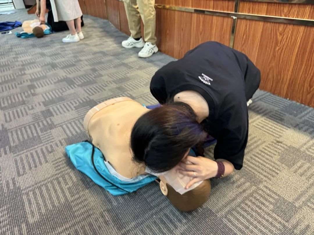 培训内容涵盖创伤包扎、心肺复苏(CPR)和自动体外除颤仪(AED)的使用等关键急救技能。详细讲解了心肺复苏和自动体外除颤仪使用的全流程。实操环节,培训师逐一指导纠正学员们的操作并模拟急救现场进行考核,学员们直观地理解和掌握了急救技能。