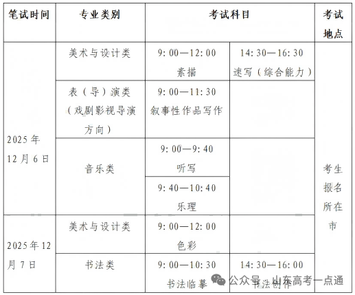 根据国家统一部署要求,2026年我省普通高等学校招生艺术类专业美术与设计类、书法类、舞蹈类、音乐类、播音与主持类和表(导)演类专业实行省级统一考试,于2025年12月6日-7日进行笔试,2025年12月17日至24日进行面试。