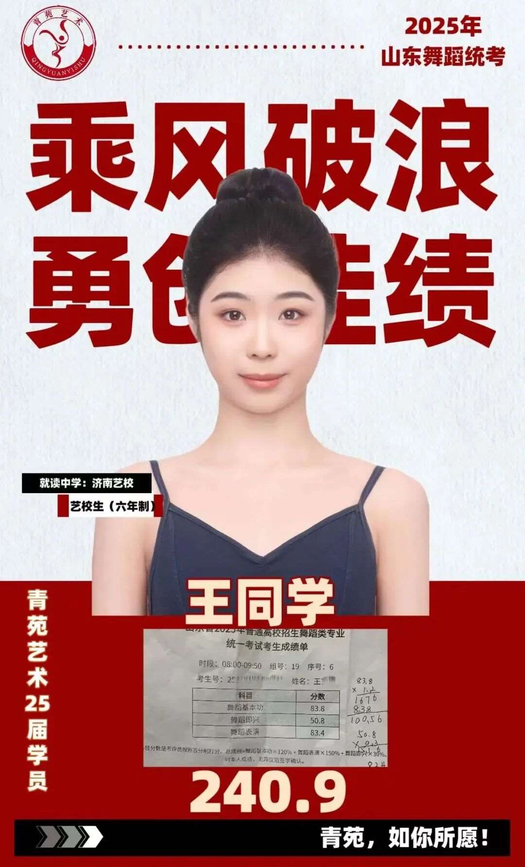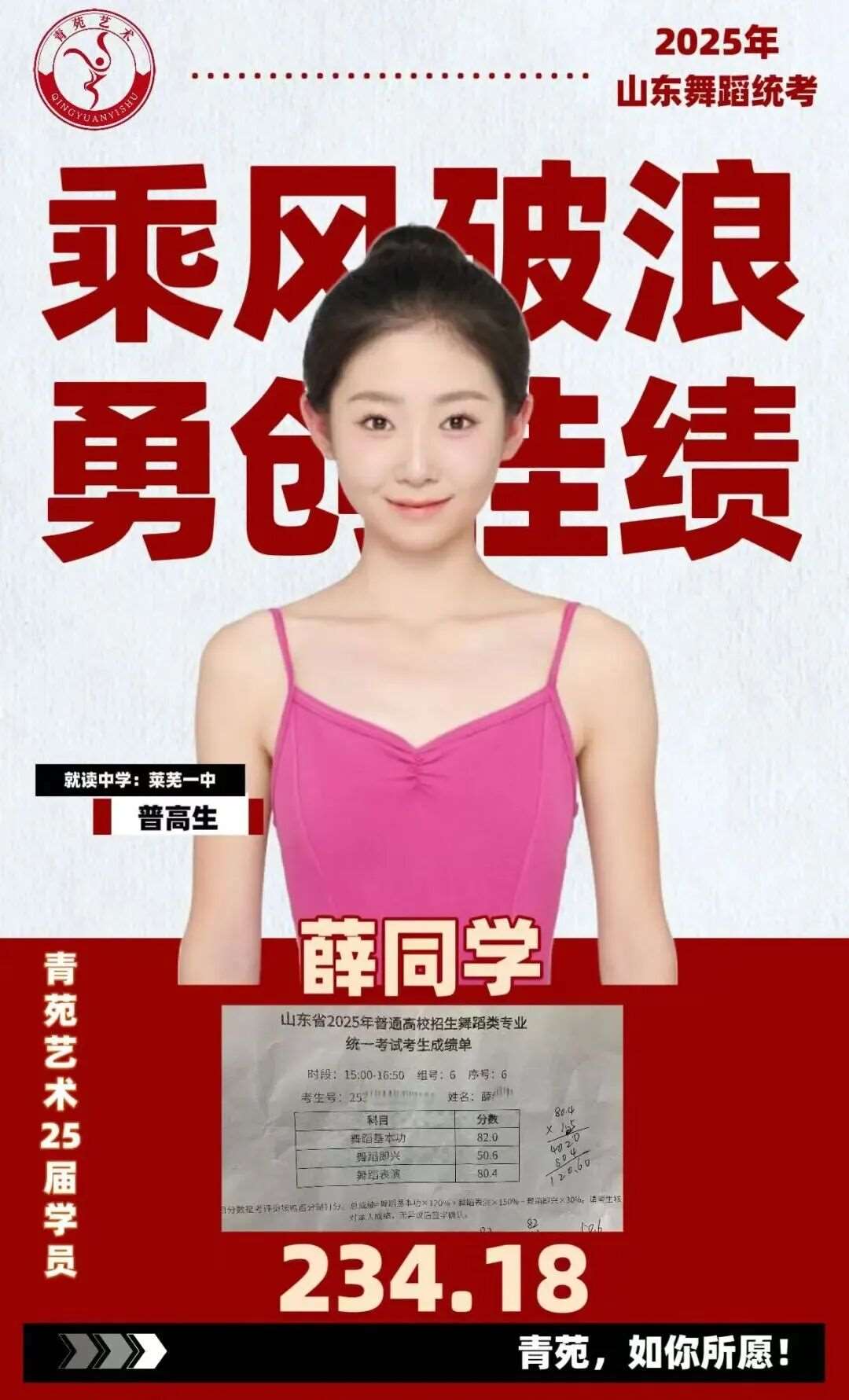 915精品班是山东青苑舞蹈学院依托十余年艺考教学积淀,专为一定专业基础、目标明确冲刺省统考高分段及学校校考的舞蹈学子打造的高阶精英班级。