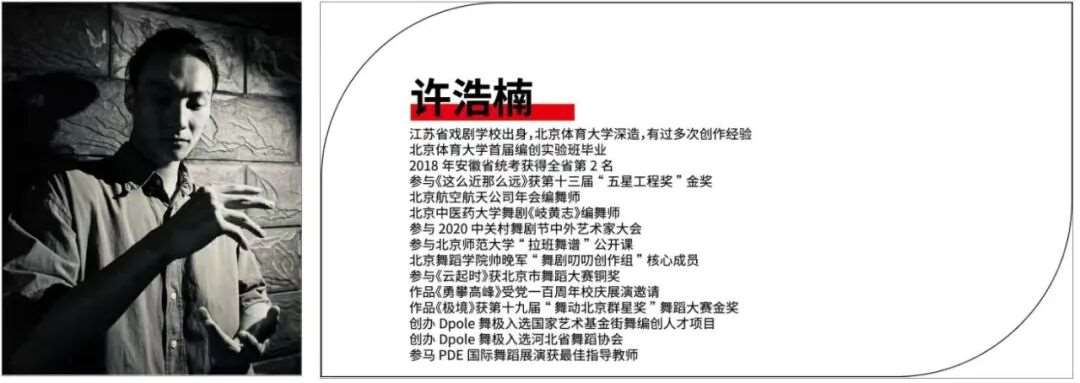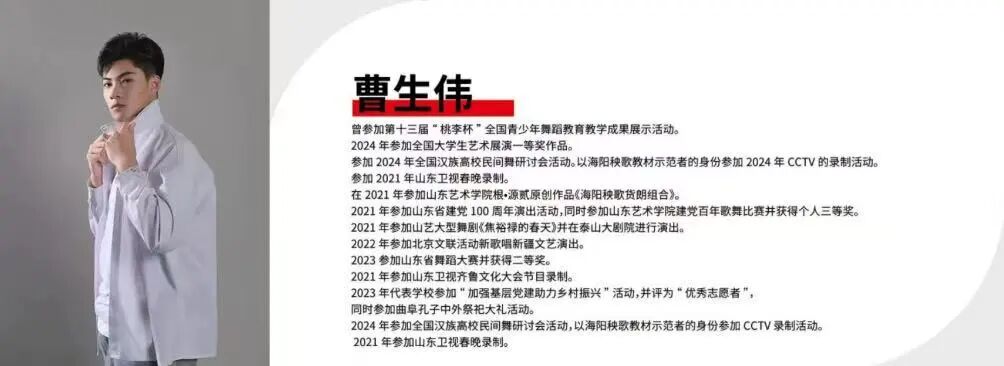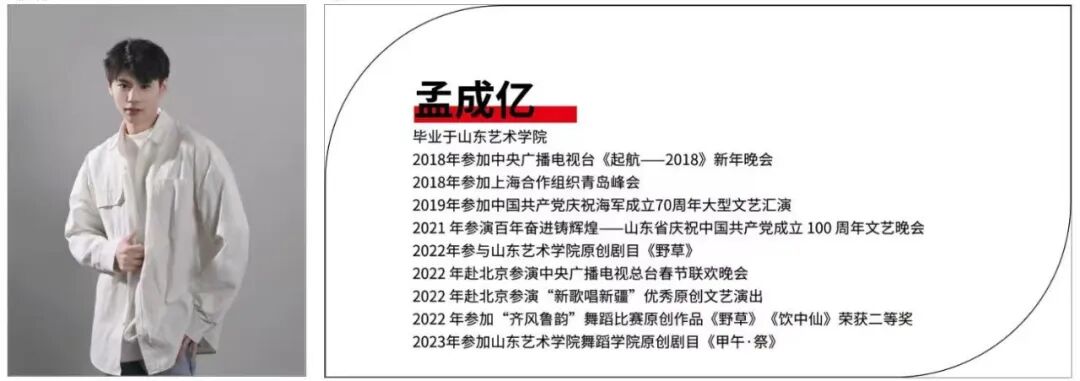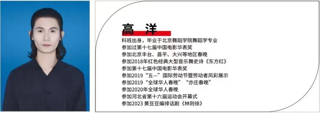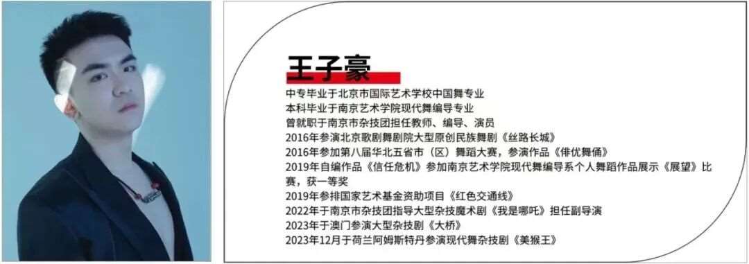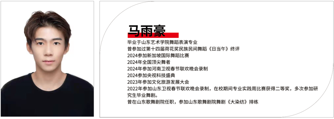 青年舞蹈家,国家一级编导,曾多次参加“桃李杯”、全国舞蹈大赛等,曾多次受邀参加中央电视台春节联欢晚会,担任主演与编导多部舞蹈、舞剧与舞蹈诗等艺术作品。