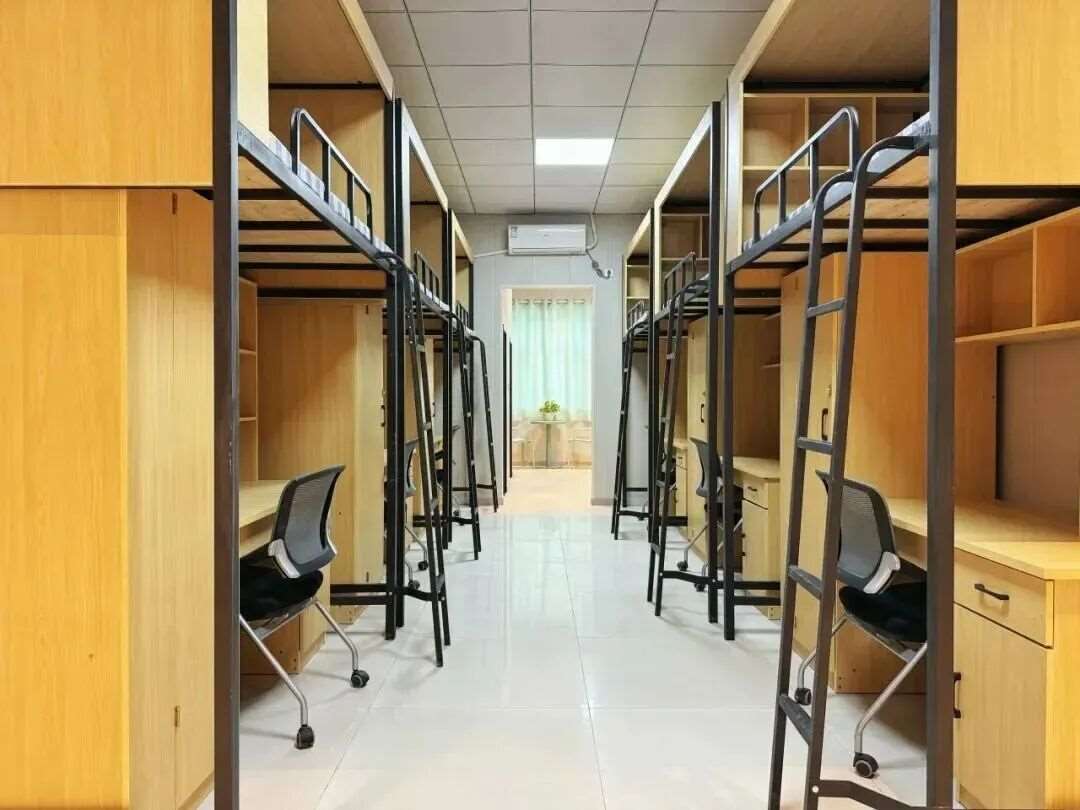 北校区宿舍配有独立卫浴、空调、公共洗衣房、储物柜、书桌等基础设施,配有专属宿管阿姨和保洁阿姨,让学生的校内生活更便捷更舒适。校内还配有小超市、快递柜,大大提高校内生活的质量。