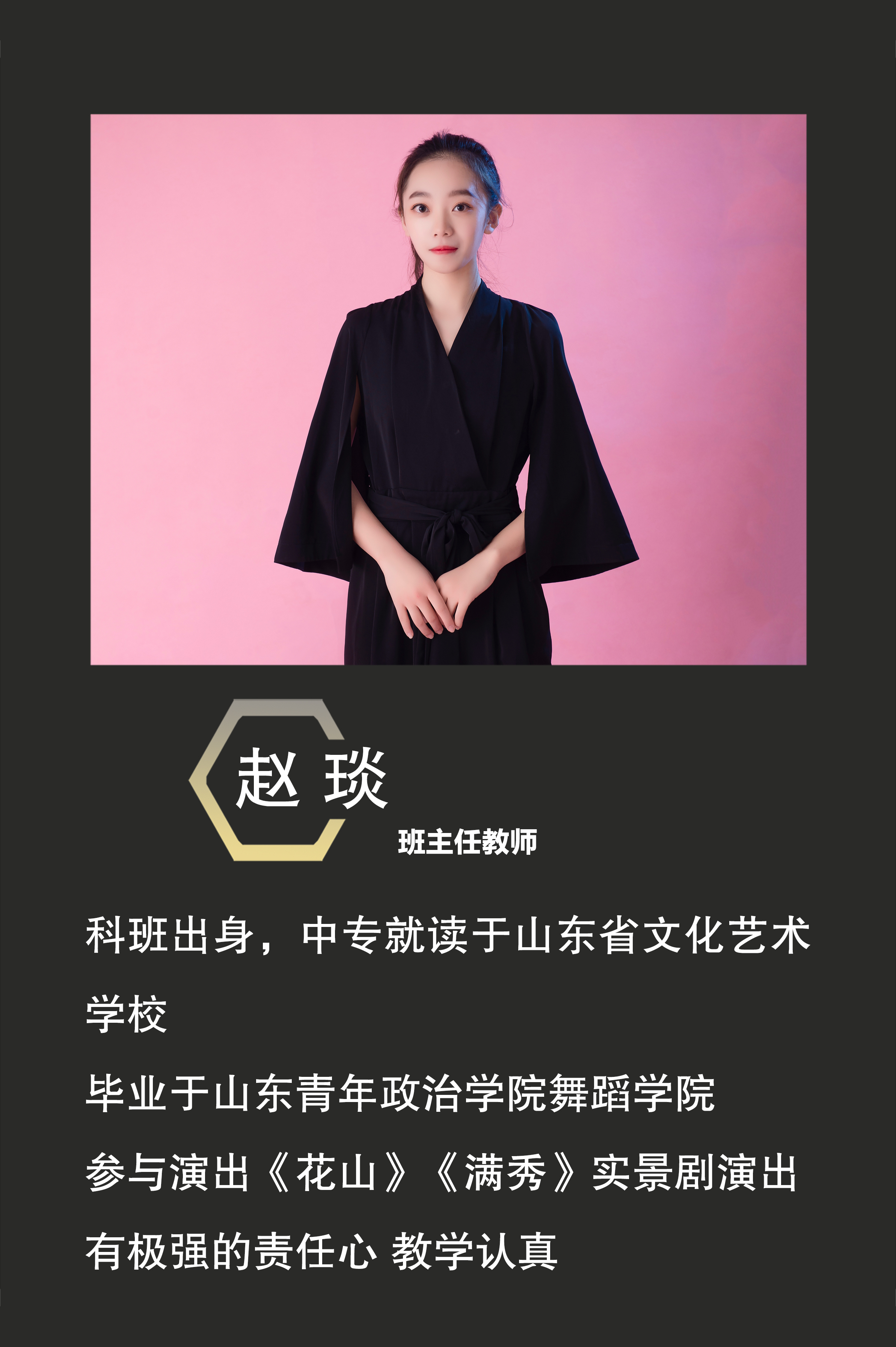 科班出身,中专就读于山东省文化艺术学校